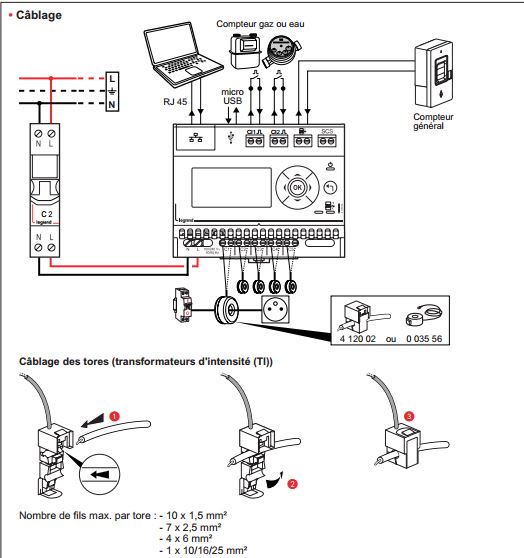 Ceci fait, le branchement des tores peut être effectué, le plus pratique est de le faire au fur et à mesure du câblage des lignes .