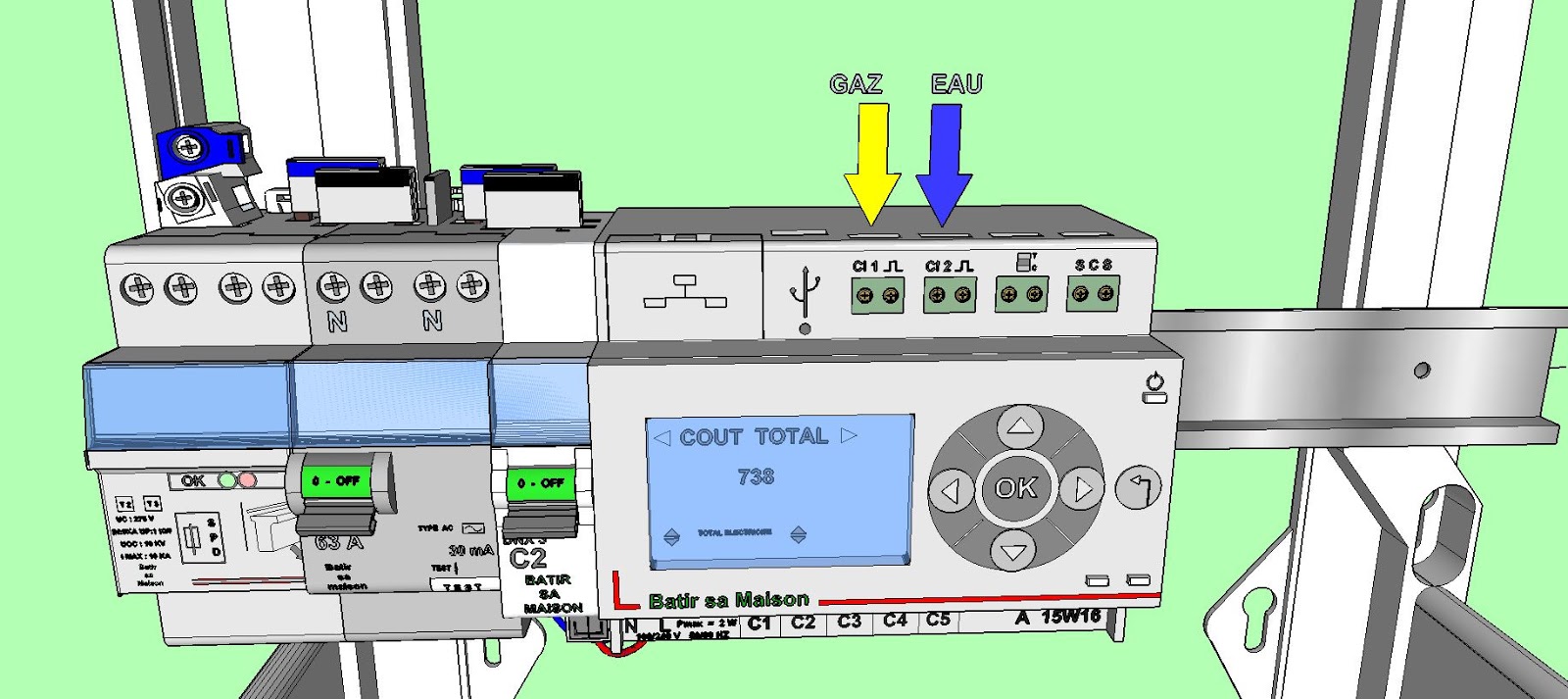 Le but est de sectoriser toute l’installation, pour permettre de connaître la consommation individuelle de chaque secteur, et bien entendu la consommation totale.