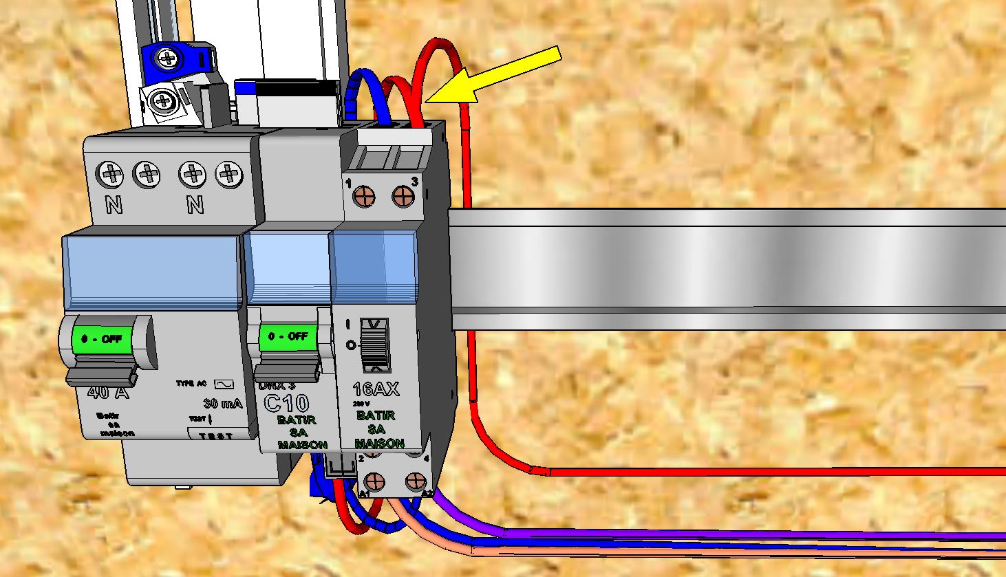 Pour effectuer ce circuit, nous aurons besoin de conducteurs de section 1,5 mm² de couleurs: