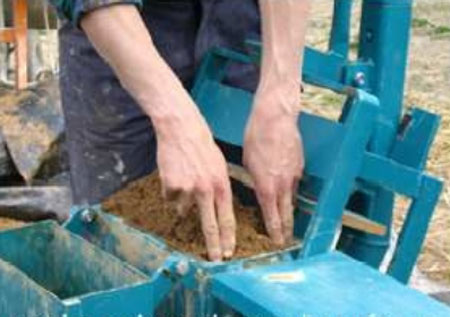 Avec une quantité suffisante de terre à proximité, trois personnes travaillant à un bon rythme, peuvent produire environ 300 Briques par jour !