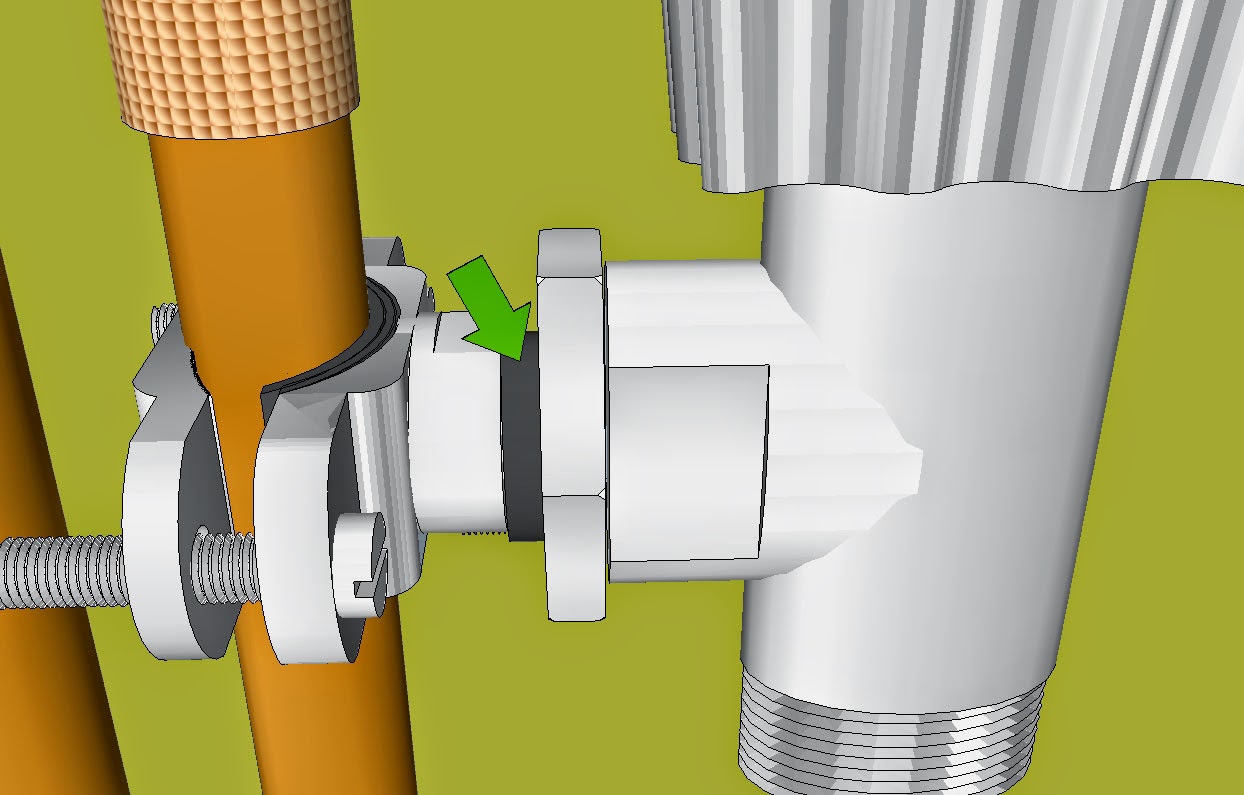 Ceci fait, je présenterait le corps du robinet en vérifiant que celui-ci est bien en position fermée !