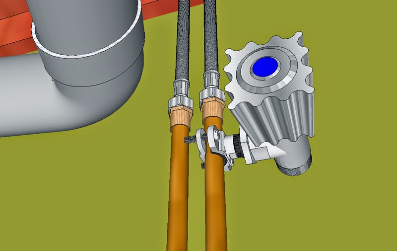 Il me suffira de repérer la canalisation d’eau froide, sachant que conventionnellement celle-ci doit se trouver à droite du mitigeur, mais par précautions, je ferai couler un peu d’eau chaude pour déterminer efficacement la conduite d’eau froide !