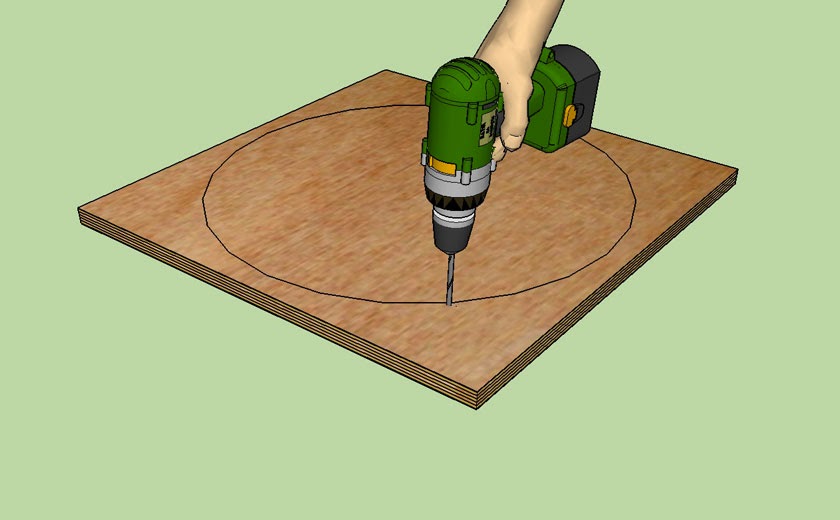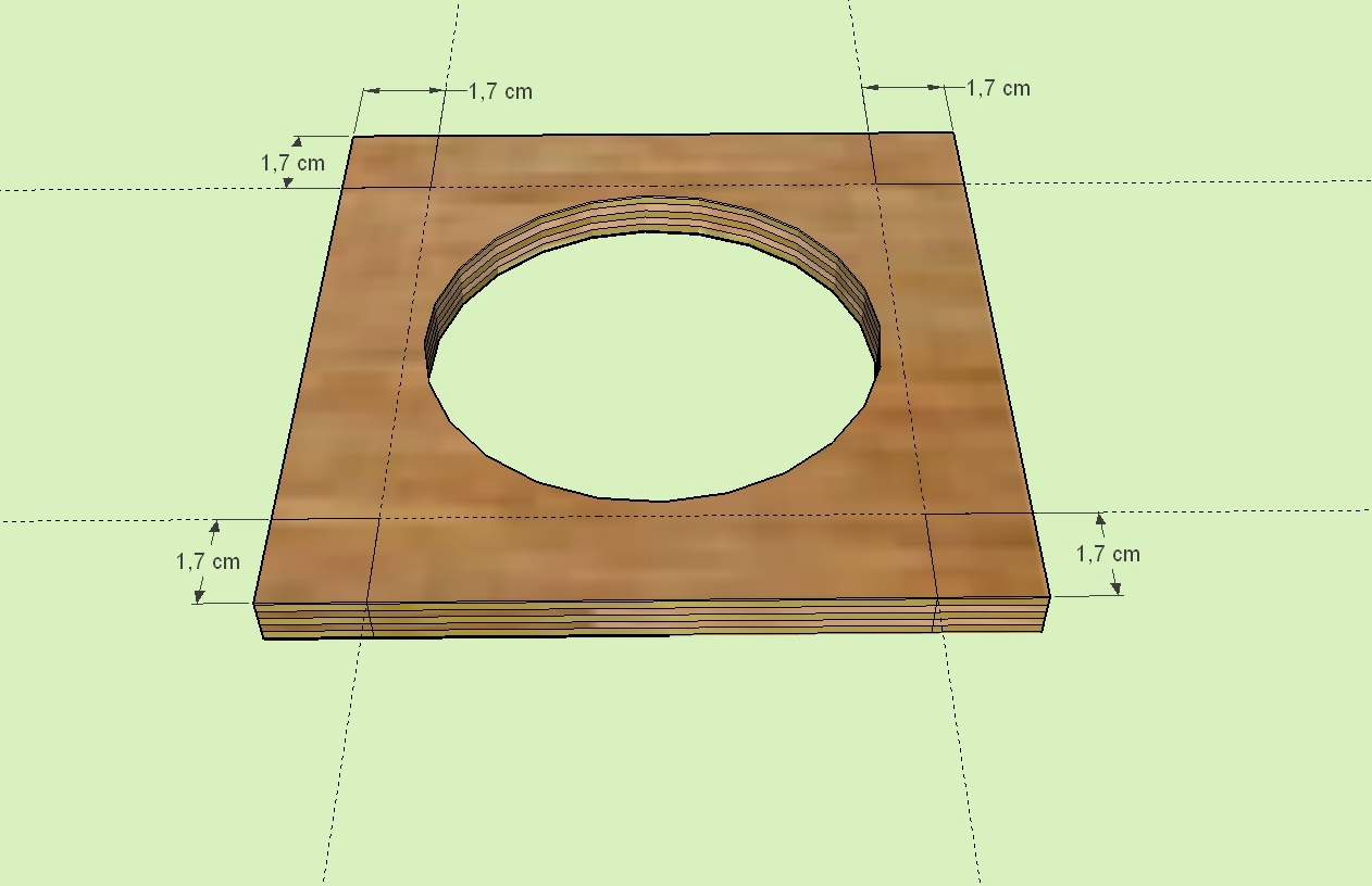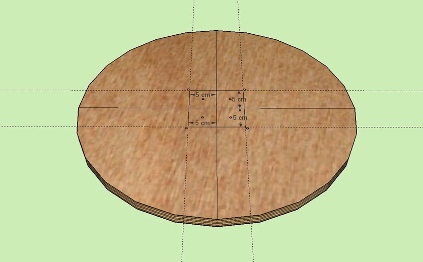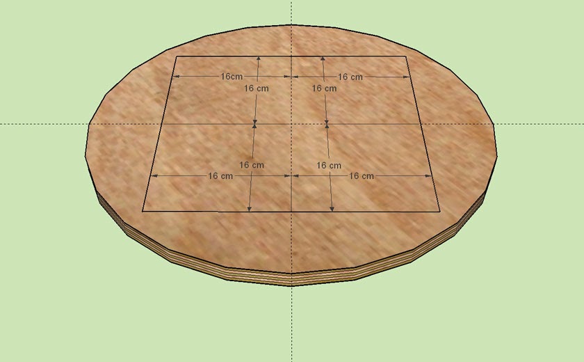Sur la plaque de contre plaqué de 21 mm, je détermine le centre.