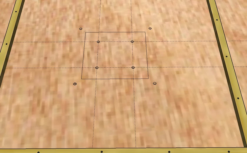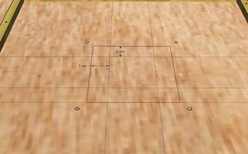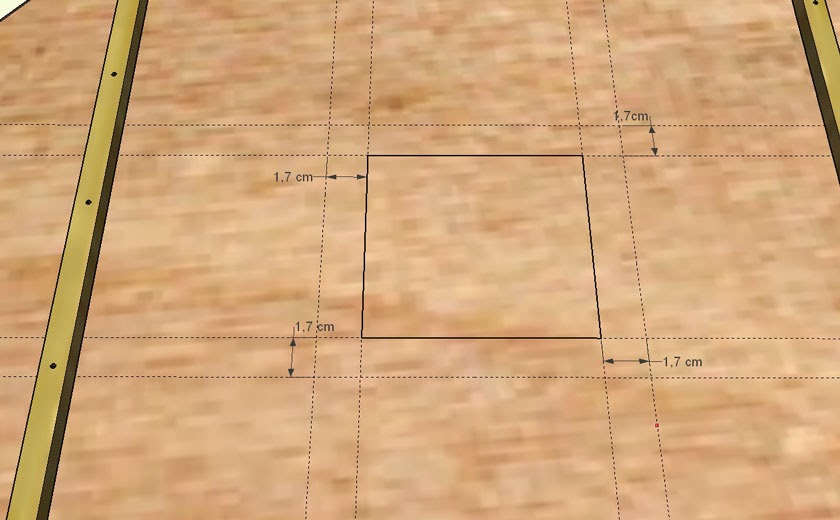 Et je trace un carré central de 10 cm de coté en prenant les trous comme repères d’angle comme ceci :