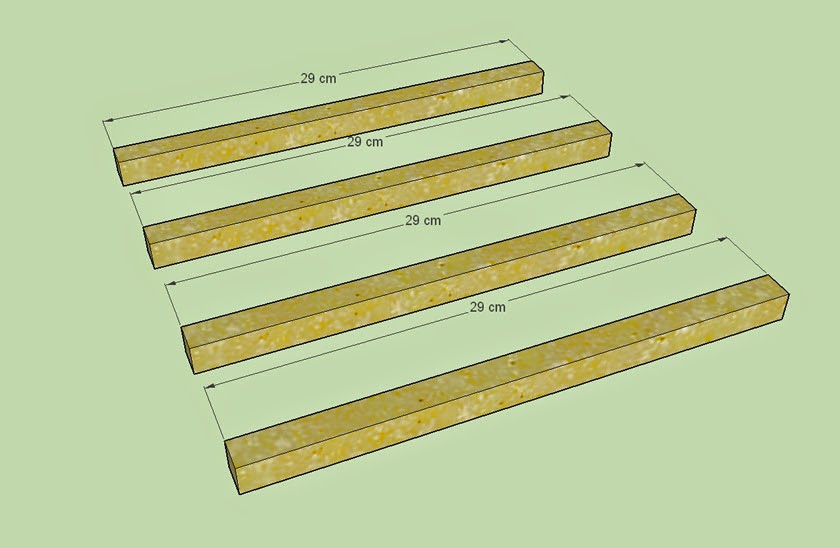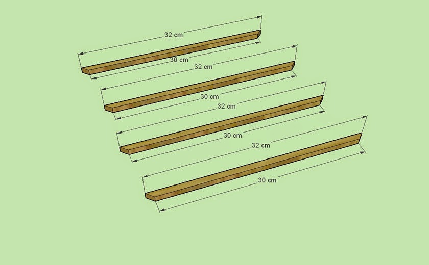 Je coupe dans le tasseau de 10mm, quatre longueurs de ces dimensions :