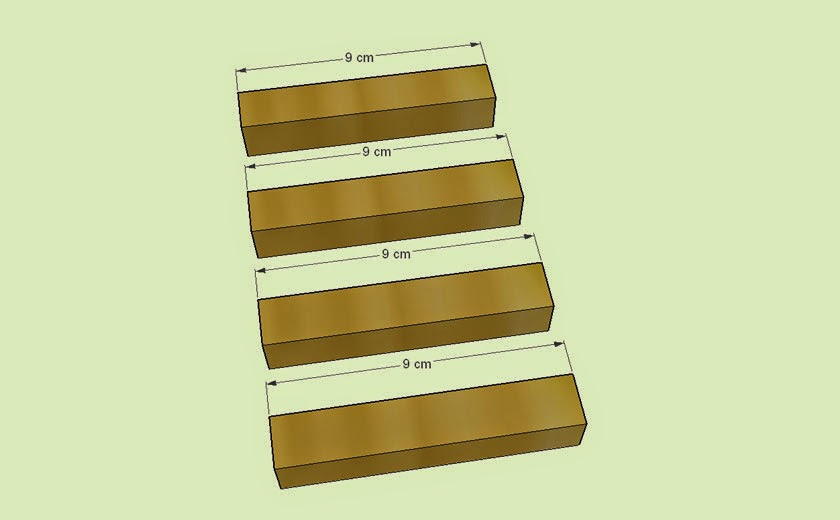 Dans le tasseau de 17 mm je coupe 8 morceaux à ces dimensions :