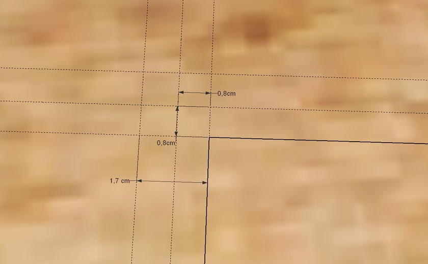 Sur chacun d’entre eux je trace des repères à ces dimensions, ils me permettront de positionner correctement ces quatre éléments !