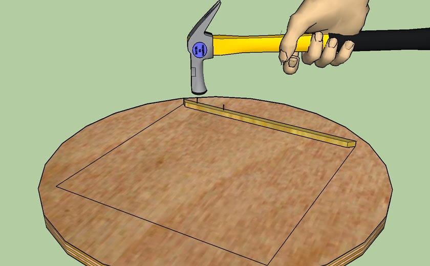 Je les fixent avec des pointes à l’intérieur du carré tracé.