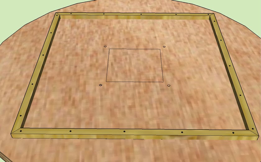 A lintérieur du premier carré, je vais percer quatre autres trous de 6mm à 2cm du bord interieur comme ceci: