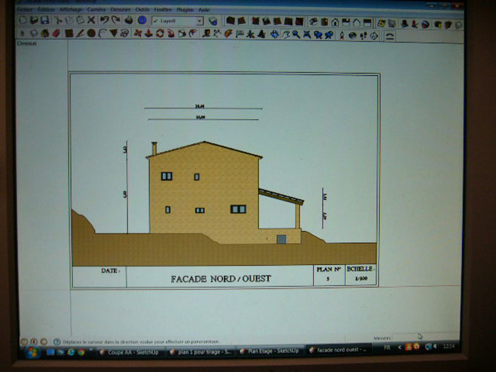 Il est évident qu’il faut avant tout faire un dessin sur SKetchUp à l’échelle que l’on a choisit, pour ma part ce sont généralement des plans au 1/100 ième donc un centimètre par mètre .