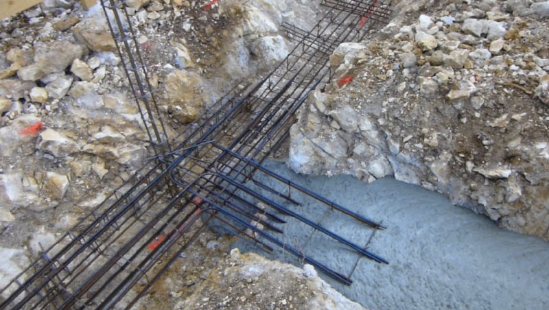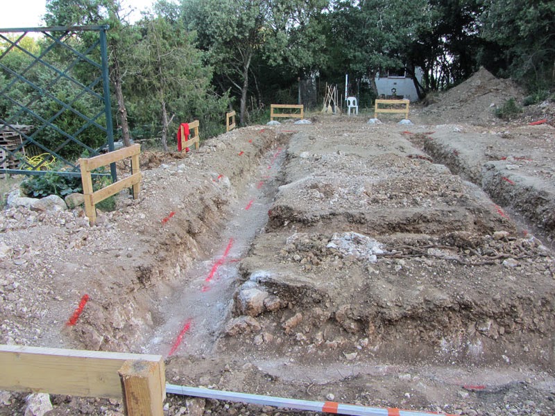 Les tranchées sont maintenant toutes creusées, la nature du terrain est assez hétéroclite, mais la dominante reste le rocher !