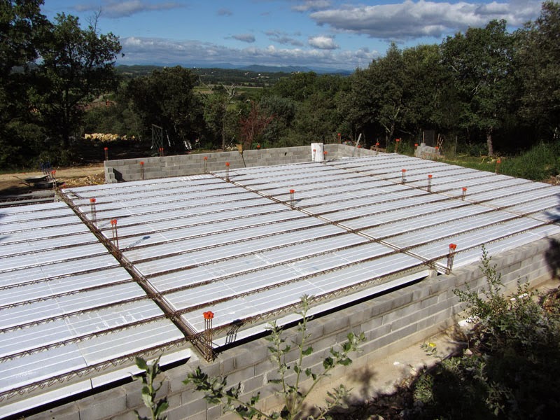 Et nous installons au fur et à mesure de l’avancement les hourdis polystyrène et nous ferraillons également les murs de refends !