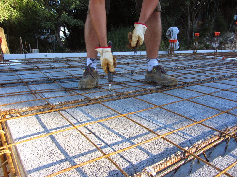 Nous attachons soigneusement tout les panneaux aux armatures des poutrelles, opération largement facilité grâce au tireur et aux liens boucle !