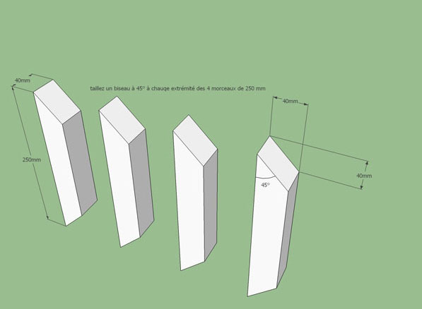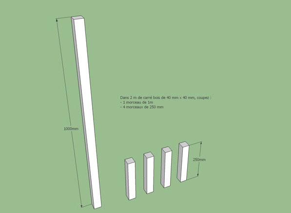 Dans la barre de carré de bois de 25mmX25mm je découpe 4 morceaux de 20cm de longueur !