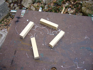 Je coupe maintenant, toujours dans la barre de carré de bois de 25mm X 25mm quatre morceaux de 12cm !