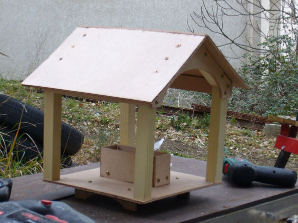 Un petit coup de lasure incolore et voilà c’est terminé, je percerai sur place des trous dans le socle pour passer des colliers de fixation et je l’installerai !