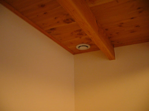 Mise en place de corniche de plafond en sapin, pour finition du plafond plancher.