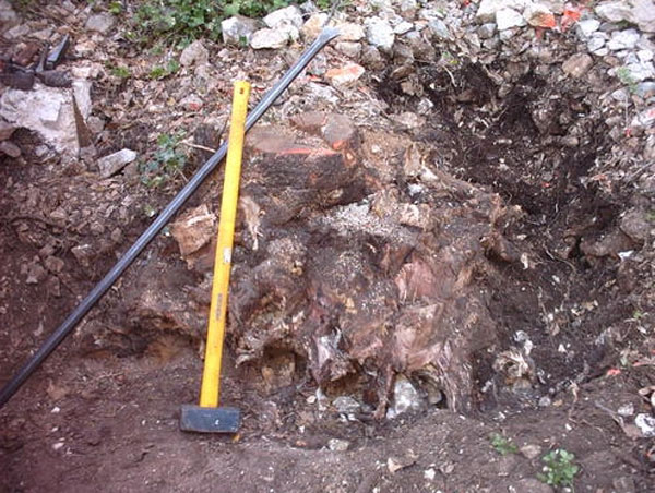 Et bien sûr il y a des souches de chênes, celle -ci a été particulièrement pénible a extraire.