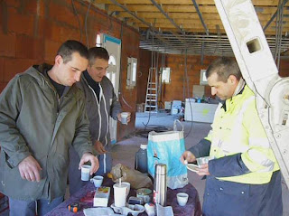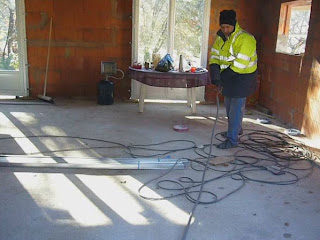 Les travaux de cette autoconstruction se faisant en famille les uns bouchent les dessous de socle des portes-fenêtres, pour les infiltrations d’eau et le courant d’air !