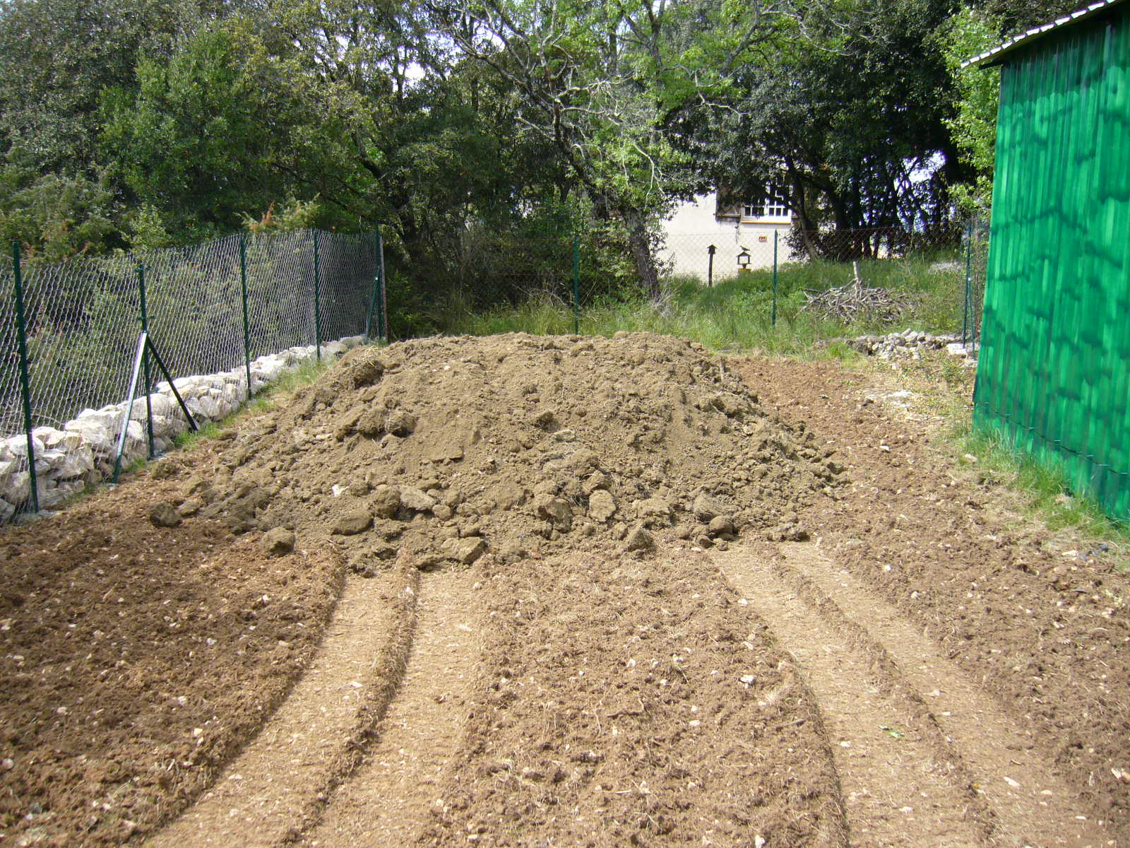 Avant de fermer complètement la clôture, je fais livrer trois camions de terre soit 30 tonnes.