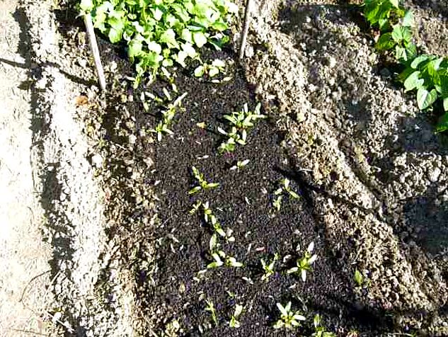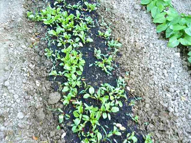 Fin AVRIL, je créai une bande 50 cm sur toute la longueur du potager, au départ sur cette bande je délimite un petit rectangle de 1,5 m de longueur et 50 cm de largeur, dans lequel je sème des radis et ensuite en continuité des betteraves rouges.