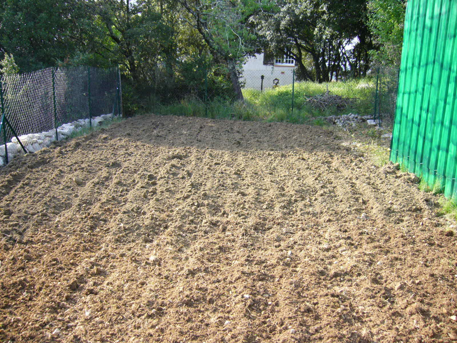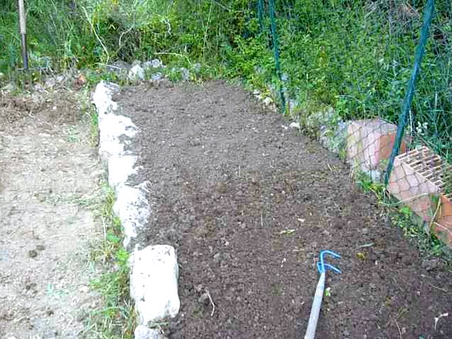 Il n’y a maintenant plus beaucoup de place, je vais créer une petite banquette contre le grillage de la clôture.
