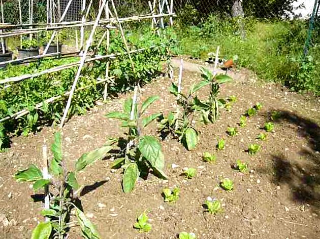 Je repique à nouveau quelques salades à coté des aubergines pour assurer la continuité de la récolte.