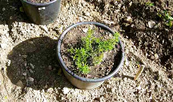Dans des pots, j’ai repiqué les herbes aromatiques que j’utilise !