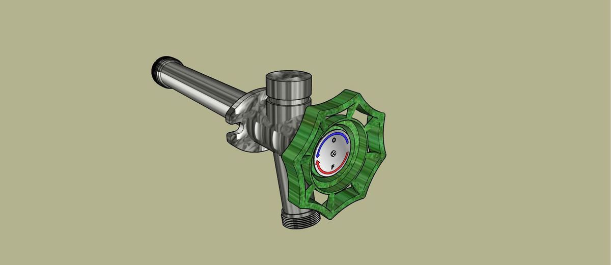 Le principe du robinet que nous utilisons ici est assez simple mais très efficace pour la protection contre le gel. En effet, le dispositif de fermeture de la conduite d’eau ne se trouve pas à proximité du volant d’ouverture de la vanne. Mais à l’extrémité du tuyau de traversée du mur. C’est à dire à l’intérieur des murs de la maison 😉.