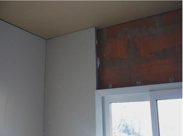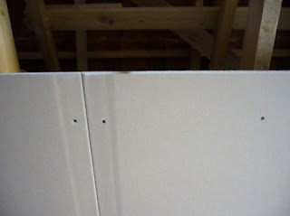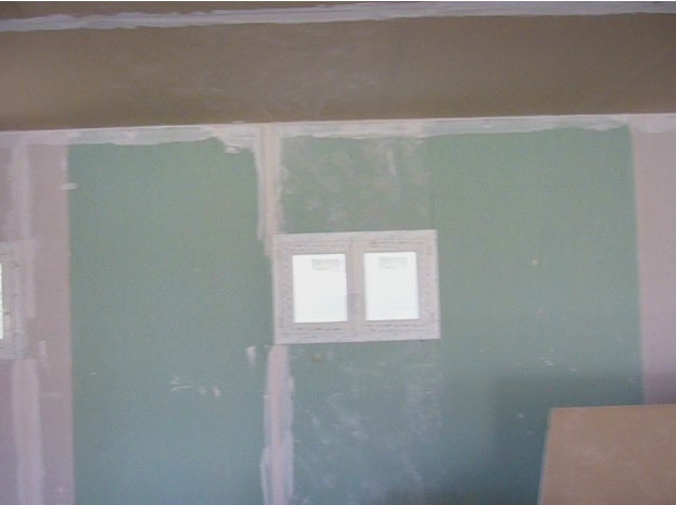 Sur cette portion de mur, ce sont des plaques de placo-plâtre hydrofuges qui sont posées car c’est l’emplacement de la salle de bain !