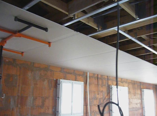 Il est temps maintenant de procéder à la mise en place des plaques de placo BA13 au plafond !