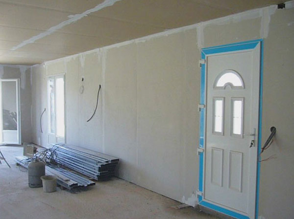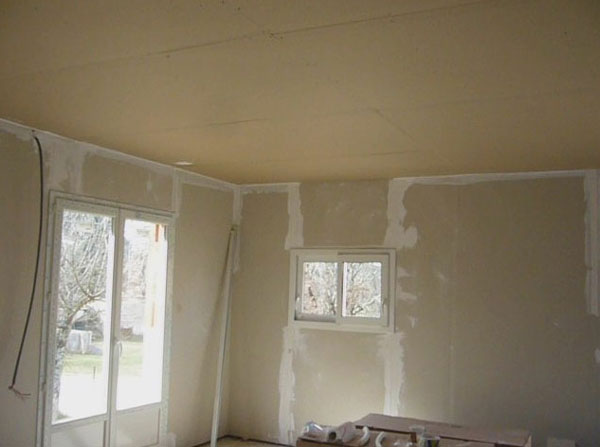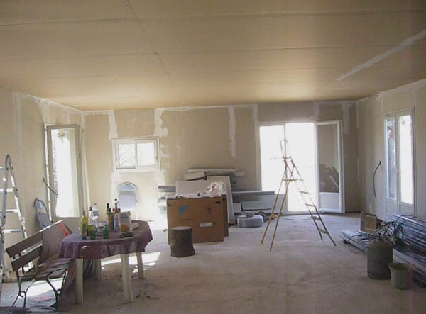 Rapidement en quelques heures l’équipe des placo-plâtre recouvre les murs et le résultat donne un tout autre aspect à l’intérieur et un apport considérable de clarté !