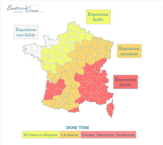 Voici la carte des risques d’impacts de foudre, les départements en rouge, sont ceux ou le parafoudre est : Obligatoire !