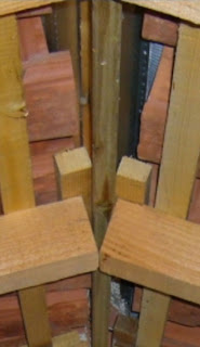 les liteaux sont en sapin dimensions 3 x 4 cm, je traite tout ce matériel avec un fongicide insecticide de base ( bien que le pin Douglas soit réputé pour ne pas avoir besoin de traitement ),