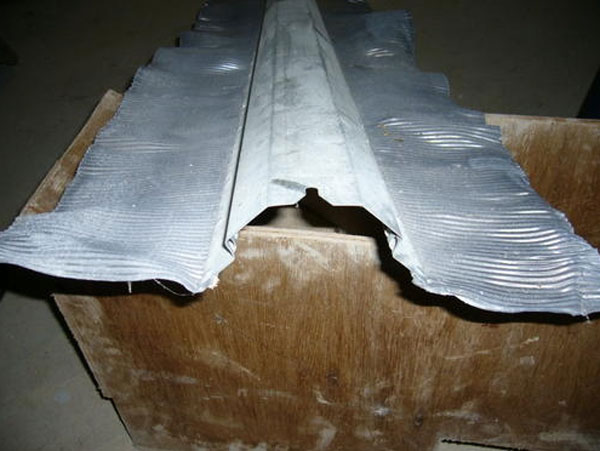 De même sur les rives de la toiture de l’appartement du bas au centre de la construction, a l’endroit du décalage des toitures je mets une jupe de plomb que je fixe sur le mur, cette jupe comporte une petite grille pour permettre l’accrochage de l’enduit de façade.
